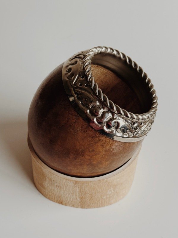 • Virola ancha cincelada al lacre: de alpaca cincelada a mano.