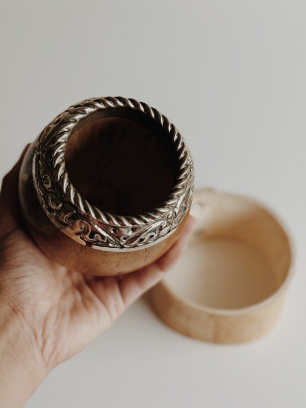 • Medidas aproximadas: 6 cm de diámetro de la boca del mate y 10 cm de alto de la calabaza (sin contar la altura del posamate).