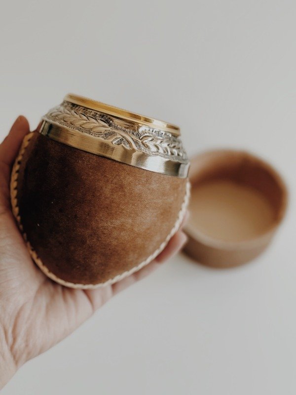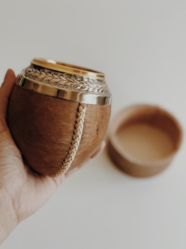 • Medidas aproximadas: 6 cm de diámetro de la boca del mate y 10 cm de alto de la calabaza (sin contar la altura del posamate).