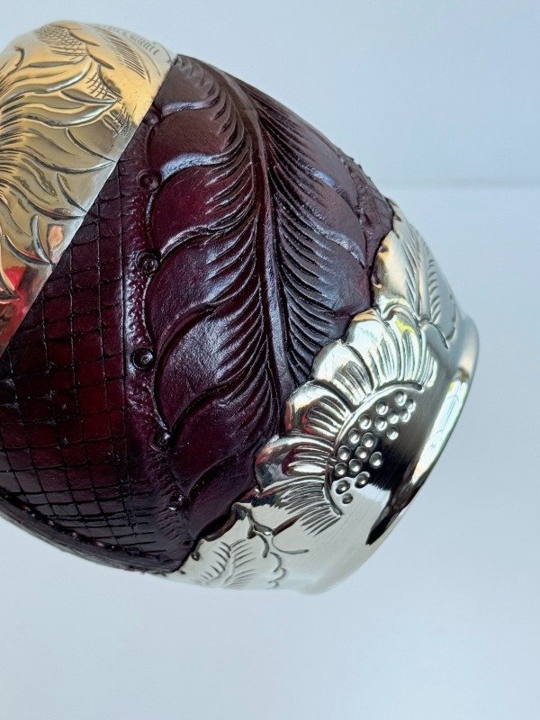 • Cuero repujado color borravino