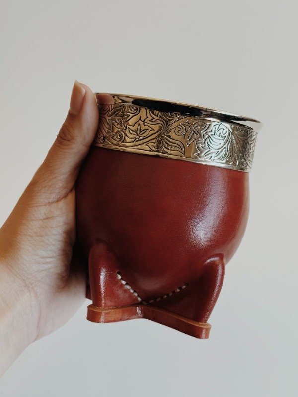 Imperial Cuero Liso Rojizo - Virola de Alpaca cincelada