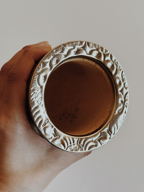 • Medidas aproximadas: 6,5cm de diámetro de la boca del mate (sin tomar la medida de la virola) y 10cm de alto.