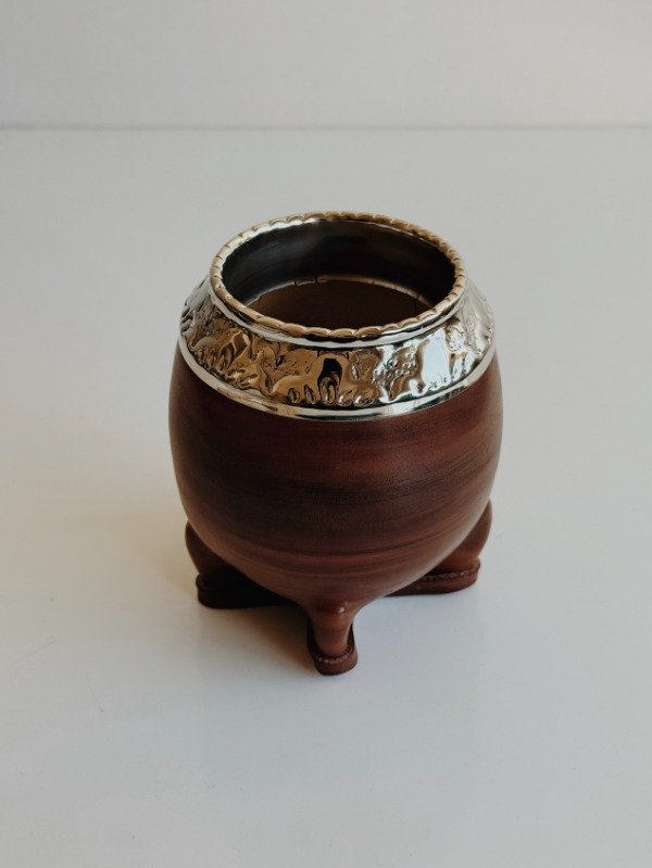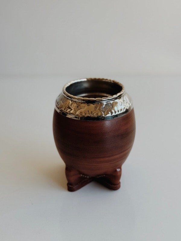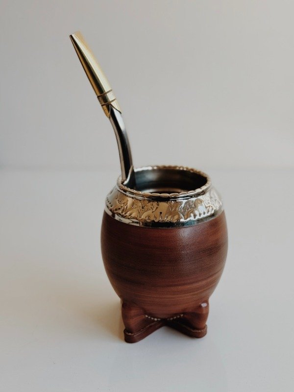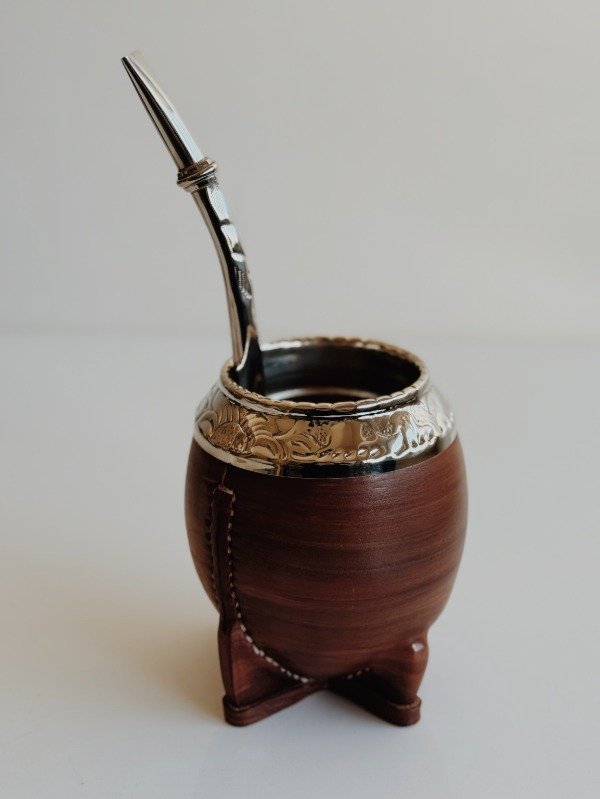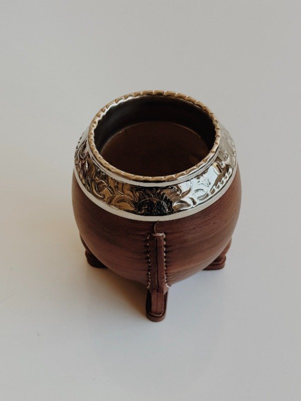 Mate Torpedo de Alpaca Cincelada - Cuero Liso color Marrón :