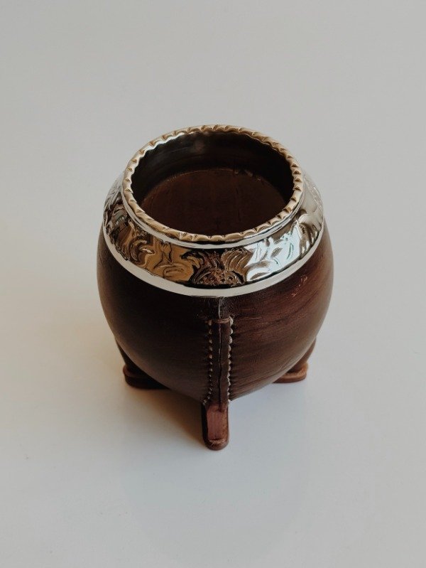 Mate Torpedo de Alpaca Cincelada - Cuero Liso color Marrón :