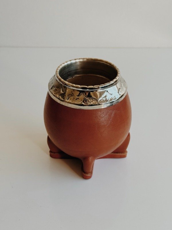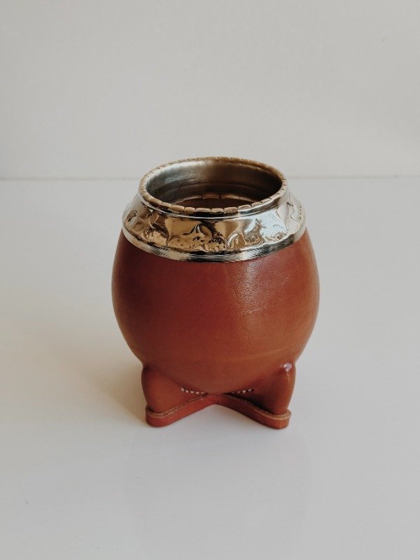 Mate Torpedo de Alpaca Cincelada - Cuero Liso color suela :